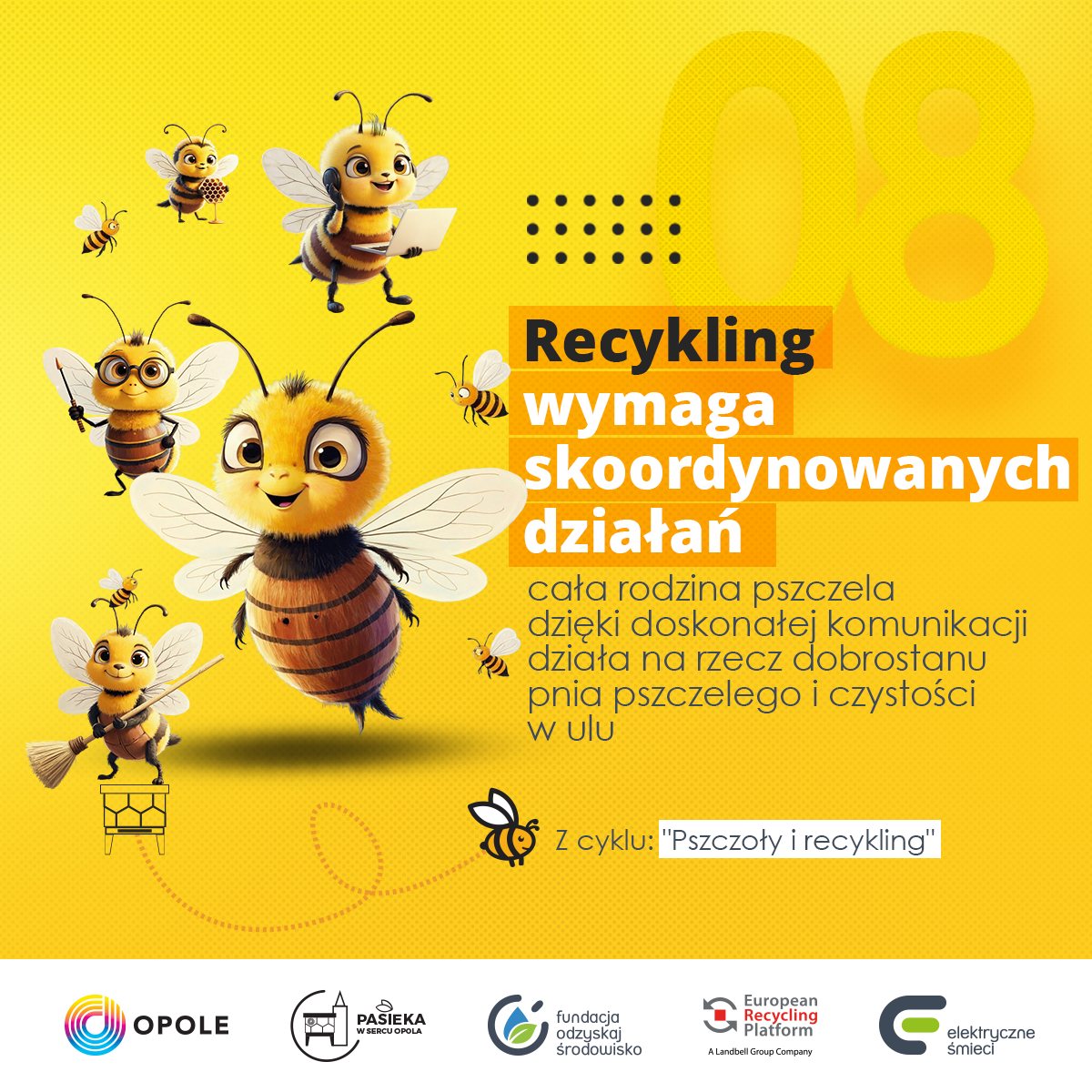 CZY WIESZ, ŻE recykling wymaga skoordynowanych działań? Pszczele rodziny to ogromne organizmy, na które składa się od 50 do 80 TYSIĘCY owadów. Na ich czele stoi tylko jedna królowa, a mimo to, doskonała organizacja sprawia, że każda z pszczół ma przydzielone zadanie. Jedne karmią młode, inne dbają o porządek i bezpieczeństwo ula, a kolejne zbierają pyłek poza domem. Dzięki ich komunikacji funkcjonowanie ula zawstydza nawet najlepsze szwajcarskie zegarki!